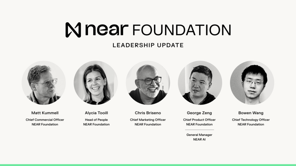 NEAR Foundation today announced a new phase of growth, marked by the addition of seasoned executives from Bloomberg, Digital Currency Group, Flipside, and dYdX. This strengthened leadership team positions NEAR to accelerate its mission of building a User-Owned AI Future and scaling adoption of privacy-preserving, AI-native products worldwide. The new appointments include: Matt Kummell, Chief […]